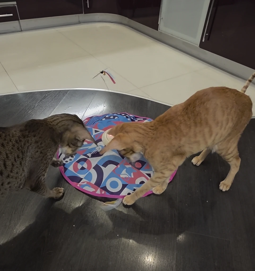 ¡Gran juguete! Se adhiere al suelo, los gatos no pueden moverlo, la mariposa se mueve de manera muy natural, como si estuviera volando. Es genial que se cargue directamente desde la corriente, ya no es necesario insertar pilas. Los gatos están entretenidos durante al menos una hora.